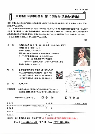 6月29日(土)に東海地区大学不動産会の第10回総会・講演会・懇親会が開催されます。