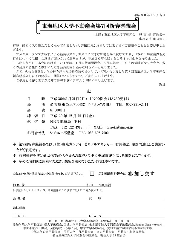 東海地区大学不動産会新春合同懇親会のご案内